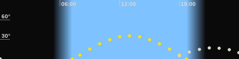 | Sonnenaufgang | 07:13 Uhr im Osten (αAz = 94.9°) |
