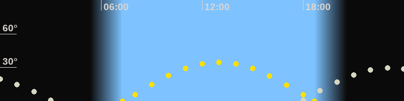 | Sonnenuntergang | 18:40 Uhr im Westen (αAz = 263.6°) |