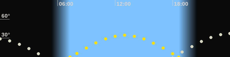 | Sonnenaufgang | 07:17 Uhr im Osten (αAz = 96.7°) |