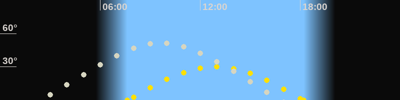 | Höchster Sonnenstand (Kulmination) | 12:55 Uhr (h = 30°) |