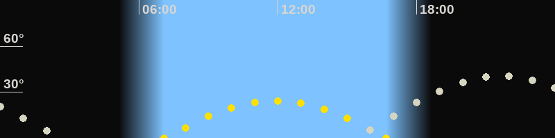 | Höchster Sonnenstand (Kulmination) | 11:53 Uhr (h = 24.5°) |