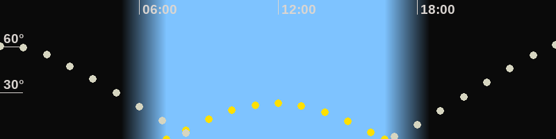 | Höchster Sonnenstand (Kulmination) | 11:53 Uhr (h = 23.2°) |