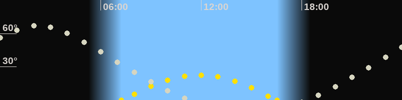 | Sonnenaufgang | 07:14 Uhr im Südosten (αAz = 116°) |
