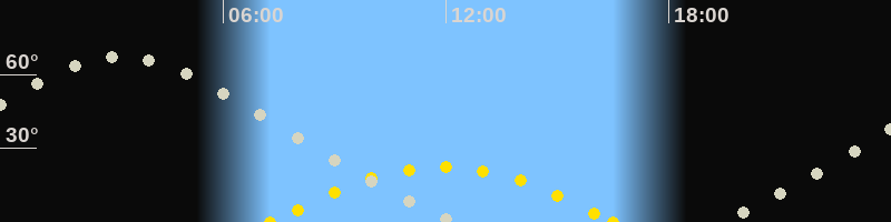 | Höchster Sonnenstand (Kulmination) | 11:54 Uhr (h = 22.4°) |