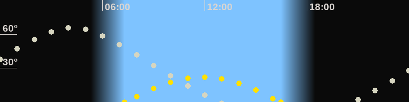 | Höchster Sonnenstand (Kulmination) | 11:54 Uhr (h = 22.1°) |