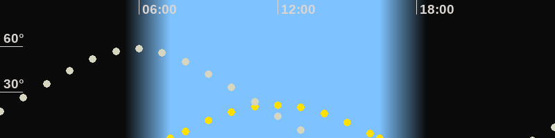| Höchster Stand (Kulmination) | 05:53 Uhr (h=58.7°) |