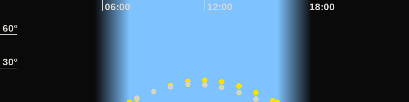 | Höchster Sonnenstand (Kulmination) | 11:55 Uhr (h = 19.5°) |