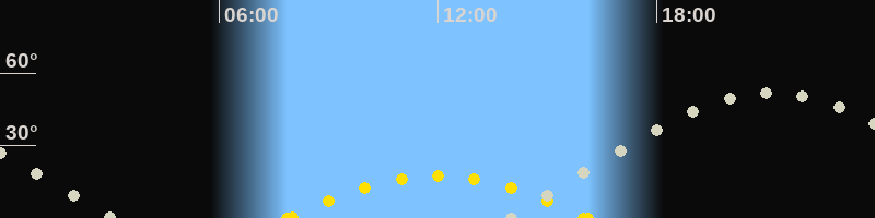 | Höchster Sonnenstand (Kulmination) | 11:59 Uhr (h = 17.4°) |