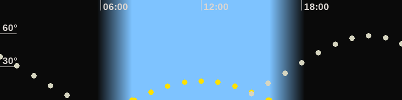 | Höchster Sonnenstand (Kulmination) | 11:59 Uhr (h = 17.3°) |