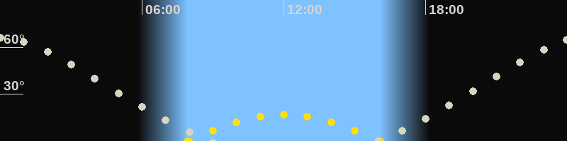 | Höchster Sonnenstand (Kulmination) | 12:00 Uhr (h = 16.9°) |