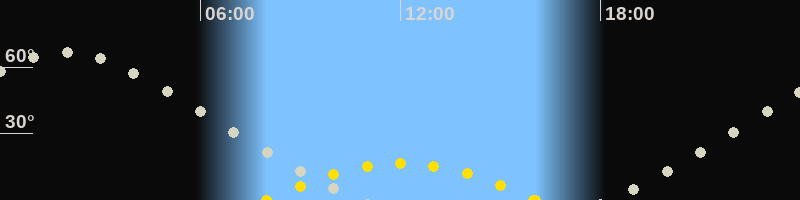 | Höchster Sonnenstand (Kulmination) | 12:01 Uhr (h = 16.6°) |