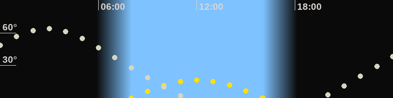 Höchster Sonnenstand (Kulmination)12:02 Uhr (h = 16.5°)