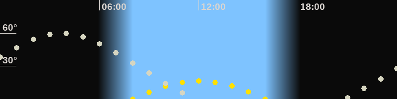 | Höchster Sonnenstand (Kulmination) | 12:02 Uhr (h = 16.4°) |