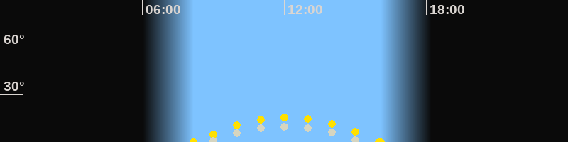 | Höchster Sonnenstand (Kulmination) | 12:07 Uhr (h = 15.8°) |