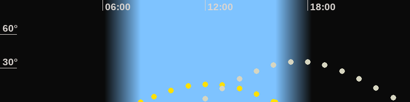 | Höchster Sonnenstand (Kulmination) | 12:10 Uhr (h = 15.9°) |
