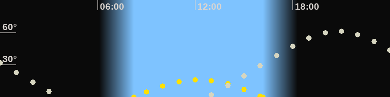 | Höchster Sonnenstand (Kulmination) | 12:12 Uhr (h = 16.1°) |
