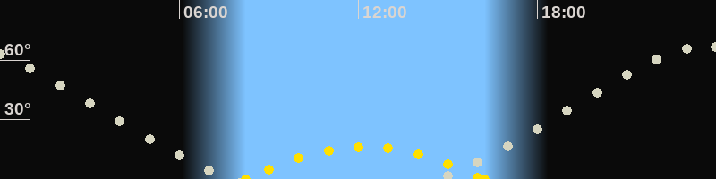 | Höchster Sonnenstand (Kulmination) | 12:14 Uhr (h = 16.4°) |