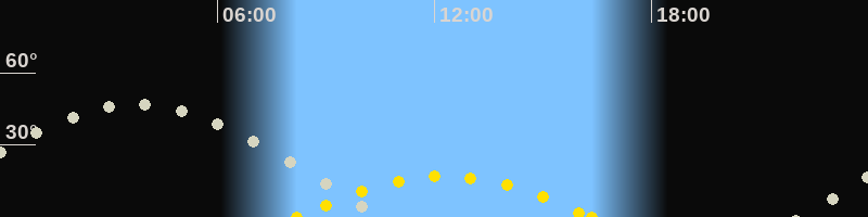 | Höchster Sonnenstand (Kulmination) | 12:16 Uhr (h = 17°) |