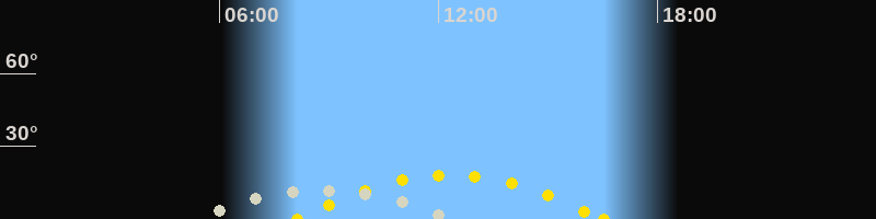 | Höchster Sonnenstand (Kulmination) | 12:19 Uhr (h = 18.1°) |