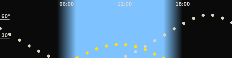 | Höchster Sonnenstand (Kulmination) | 12:23 Uhr (h = 21.3°) |
