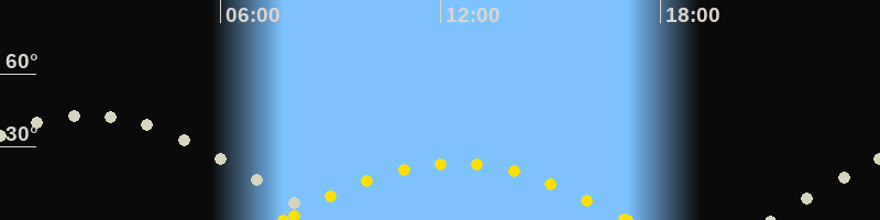 | Höchster Sonnenstand (Kulmination) | 12:24 Uhr (h = 23.3°) |