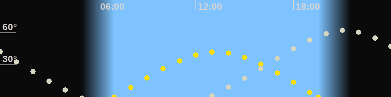 Höchster Sonnenstand (Kulmination)13:15 Uhr (h = 41.8°)