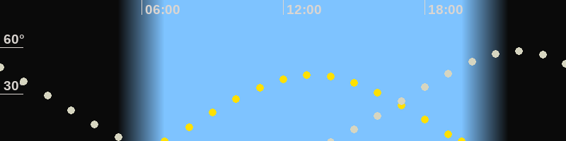 Höchster Sonnenstand (Kulmination)13:15 Uhr (h = 42.2°)