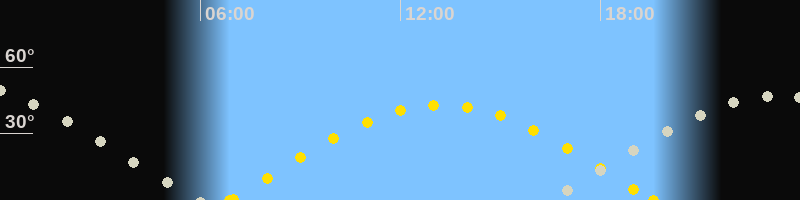 Höchster Sonnenstand (Kulmination)13:14 Uhr (h = 43°)
