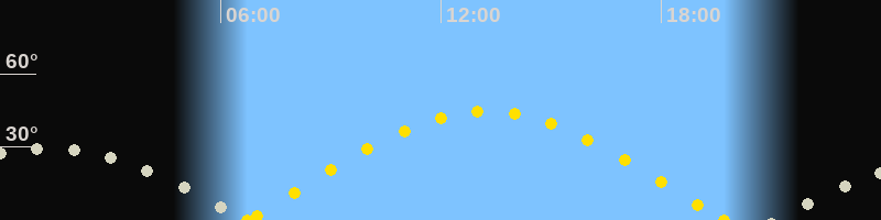 | Höchster Sonnenstand (Kulmination) | 13:13 Uhr (h = 44.6°) |