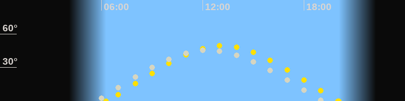 | Sonnenaufgang | 06:16 Uhr im Osten (αAz = 73.4°) |