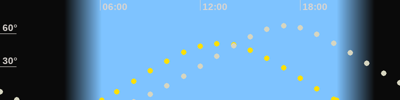 | Sonnenaufgang | 06:06 Uhr im Osten (αAz = 70.6°) |