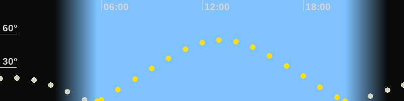 | Höchster Sonnenstand (Kulmination) | 13:07 Uhr (h = 54.6°) |