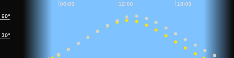 Höchster Sonnenstand (Kulmination)13:06 Uhr (h = 58.6°)