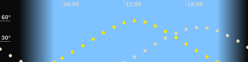 Höchster Sonnenstand (Kulmination)13:06 Uhr (h = 59.8°)