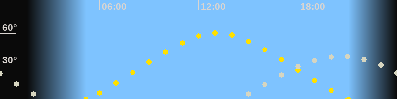| Höchster Sonnenstand (Kulmination) | 13:07 Uhr (h = 60.2°) |