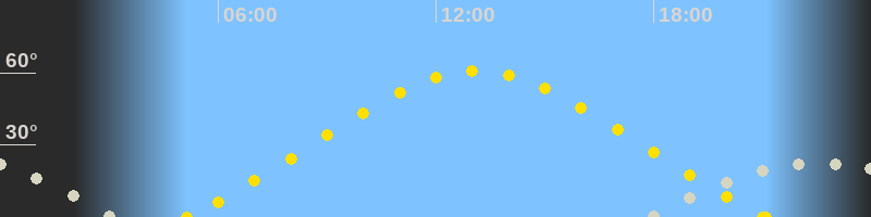 | Höchster Sonnenstand (Kulmination) | 13:07 Uhr (h = 60.7°) |