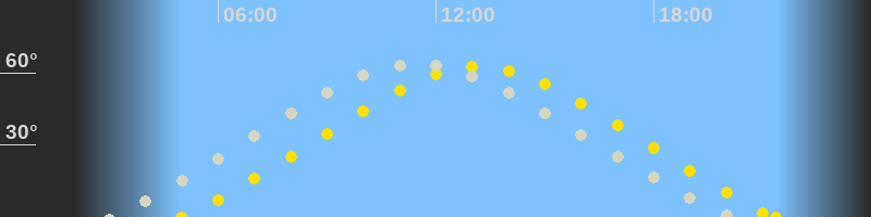 | Höchster Sonnenstand (Kulmination) | 13:10 Uhr (h = 62.5°) |