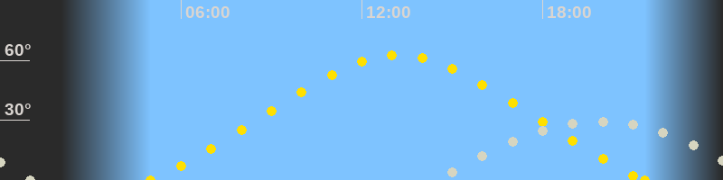 | Höchster Sonnenstand (Kulmination) | 13:12 Uhr (h = 62.7°) |
