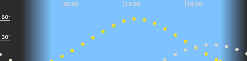 | Höchster Sonnenstand (Kulmination) | 13:12 Uhr (h = 62.7°) |