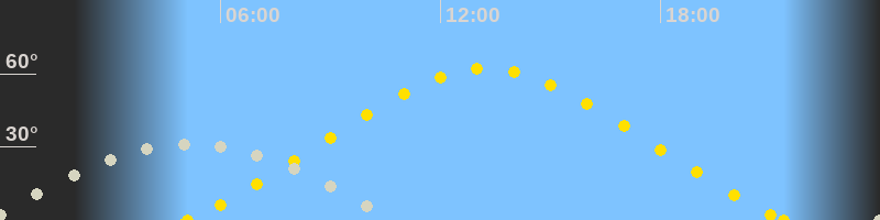 | Höchster Sonnenstand (Kulmination) | 13:14 Uhr (h = 62.1°) |