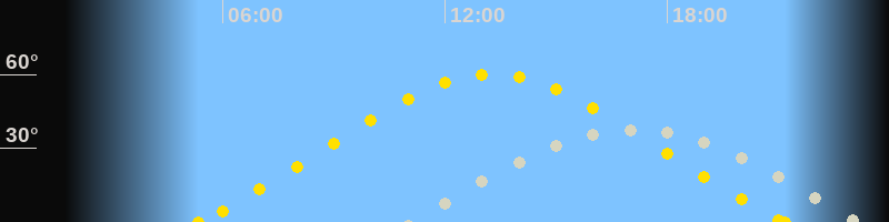 | Höchster Sonnenstand (Kulmination) | 13:16 Uhr (h = 60.1°) |