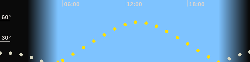 | Höchster Sonnenstand (Kulmination) | 13:16 Uhr (h = 58°) |