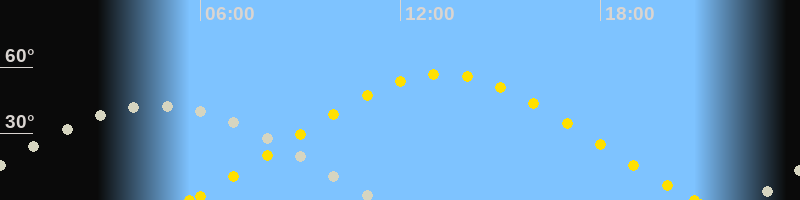 | Höchster Sonnenstand (Kulmination) | 13:16 Uhr (h = 56.8°) |