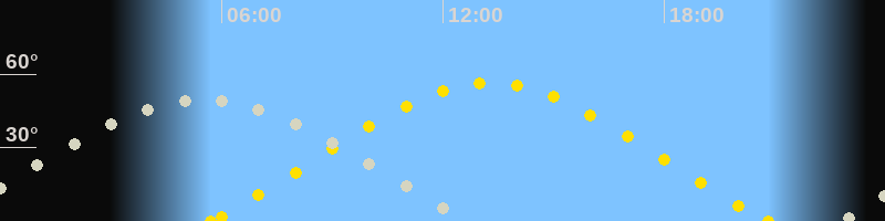 | Höchster Sonnenstand (Kulmination) | 13:16 Uhr (h = 56.5°) |