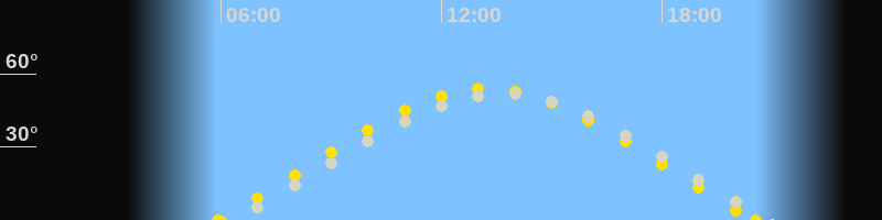 | Höchster Sonnenstand (Kulmination) | 13:15 Uhr (h = 54°) |