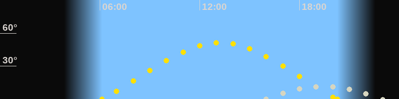 | Sonnenaufgang | 06:07 Uhr im Osten (αAz = 69.7°) |