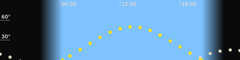 | Sonnenaufgang | 06:14 Uhr im Osten (αAz = 71.9°) |