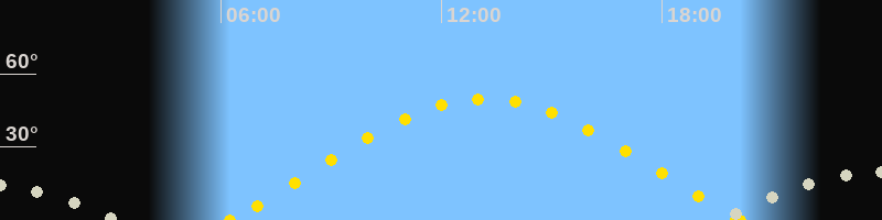 | Höchster Sonnenstand (Kulmination) | 13:12 Uhr (h = 49.7°) |