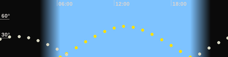 | Höchster Sonnenstand (Kulmination) | 13:11 Uhr (h = 48.7°) |