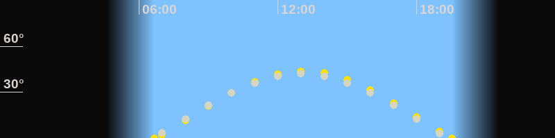 | Sonnenaufgang | 06:40 Uhr im Osten (αAz = 81.8°) |